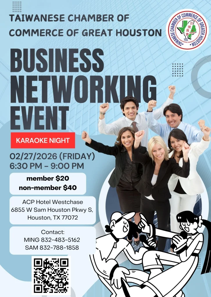 The Taiwanese Chamber of Commerce of Greater Houston cordially invites you to join our upcoming Business Networking Event.