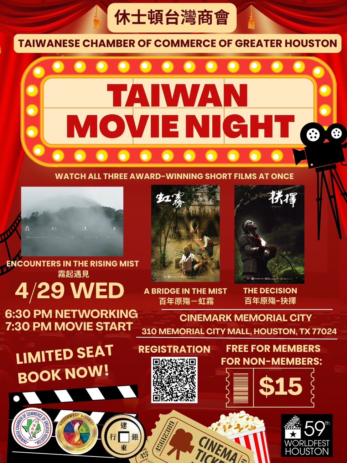 休士頓台商會會員免費, 非會員 $15,即可欣賞三部作品!