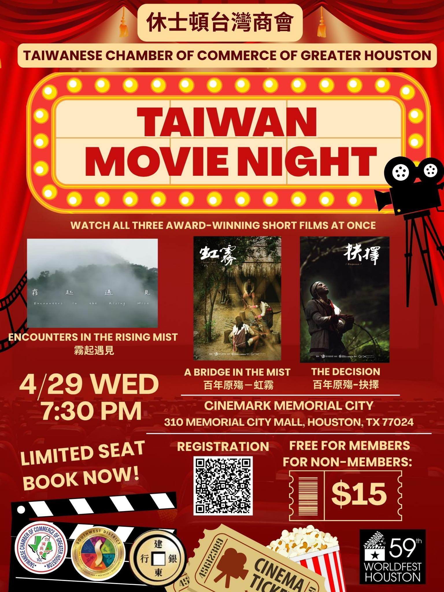 《活動》Taiwan Movie Night 台灣電影之夜 Posted on 21 4 月, 2026 by TCCHouston 活動詳情請見: https://tcchouston.org/event/taiwan-movie-night-042026/
